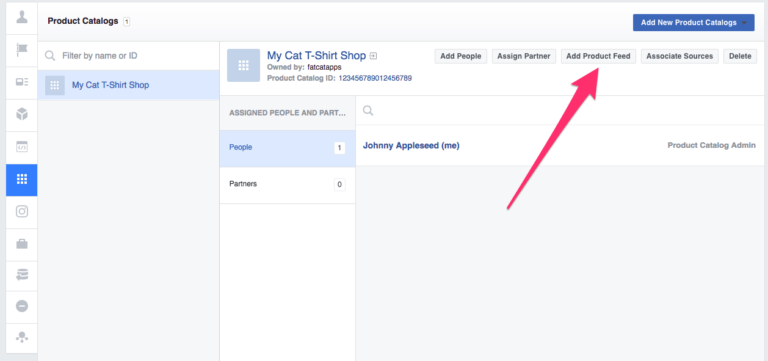 Well done. You’ve just created your Product Catalog. Now click Add Product Feed.