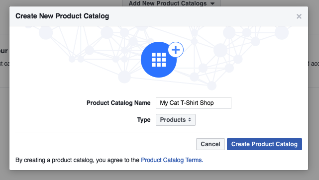 Next, give your Product Catalog a name, make sure Type is set to Products and click “Create Product Catalog”.