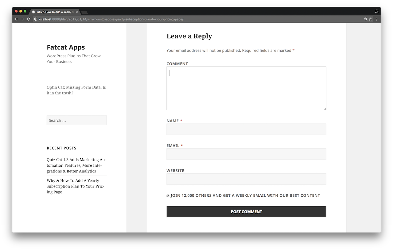 Commenters are already engaging with your content, so why not let them subscribe to your email list? Optin Cat lets you add an optin checkbox to your comment forms. Learn More >>