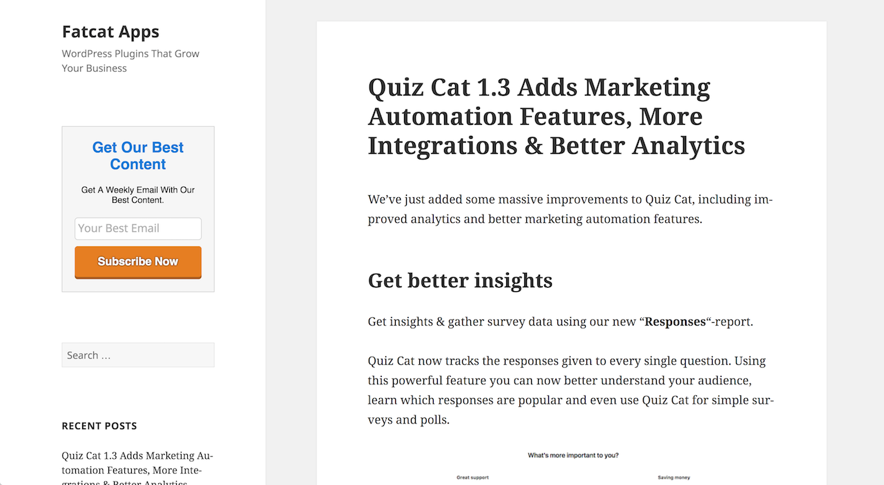 Sidebar optins are an easy win for any blog or website. If you haven’t added an optin to your sidebar you’re defintely missing out on email subscribers. Optin Cat makes adding sidebar optins a breeze. Learn More >>